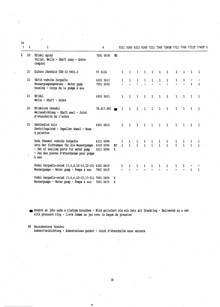 Těsnění vod. čerpadla UŘ I 950613 n.7101-0618